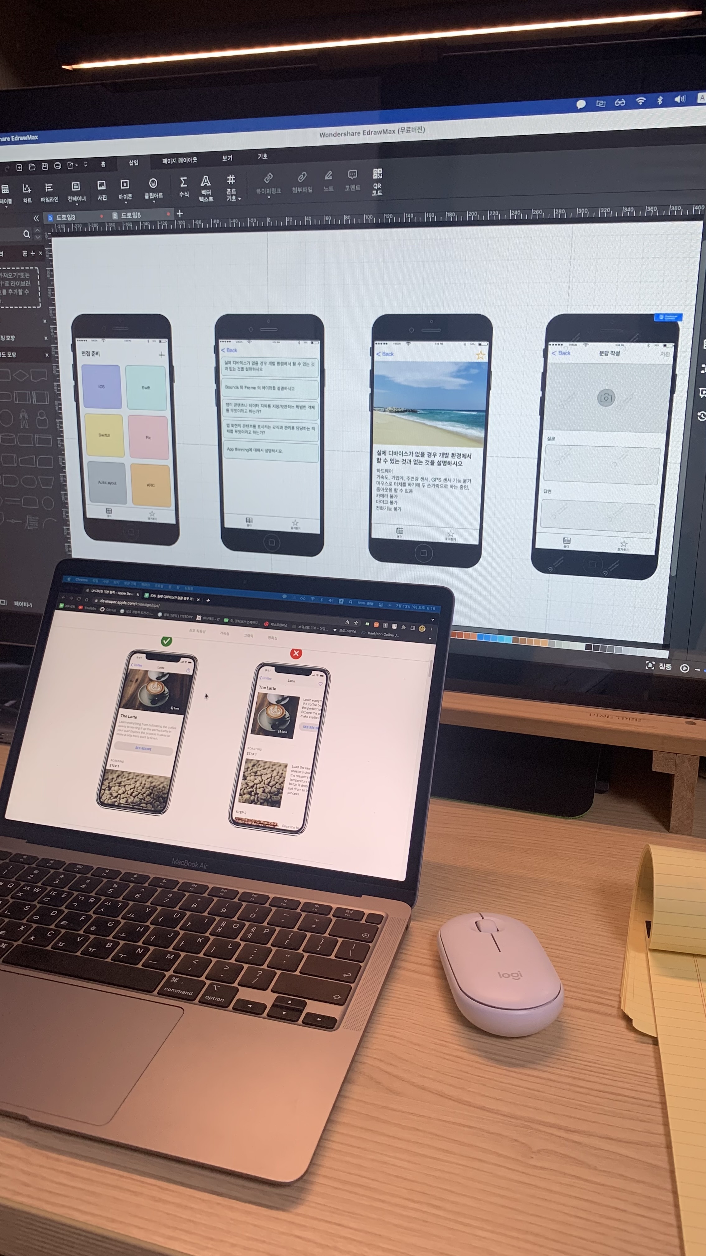 문답 앱 구현을 시작하기 전에 상상해 뒀던 UI를 노트에 직접 그려보고